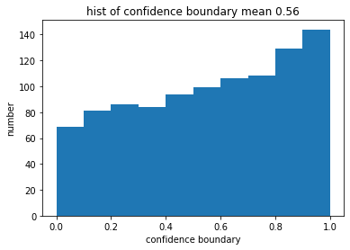 2.整机寿命的置信度。接着上面,整机的寿命真值在1100h左右,对整机寿命做验证时由于存在随机波动性,则整机寿命在验证试验中的置信度又是另外1个值了。假设整机也做定数结尾试验失效数为5个,则整机寿命大于1000h的置信度为0.56(1000次)仿真的均值。1000次仿真中整机在验证试验中的置信度有大有小,这1000次验证的置信度分布如下